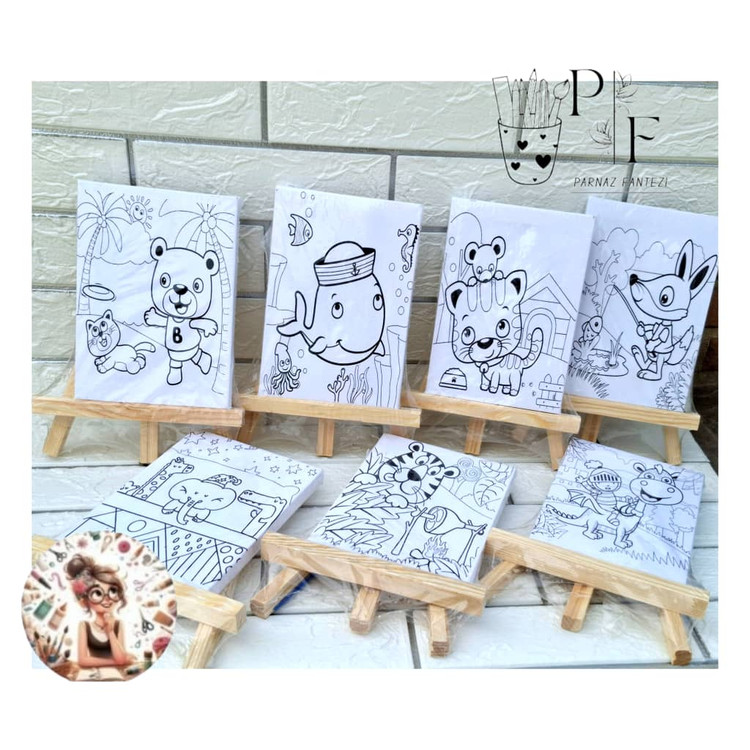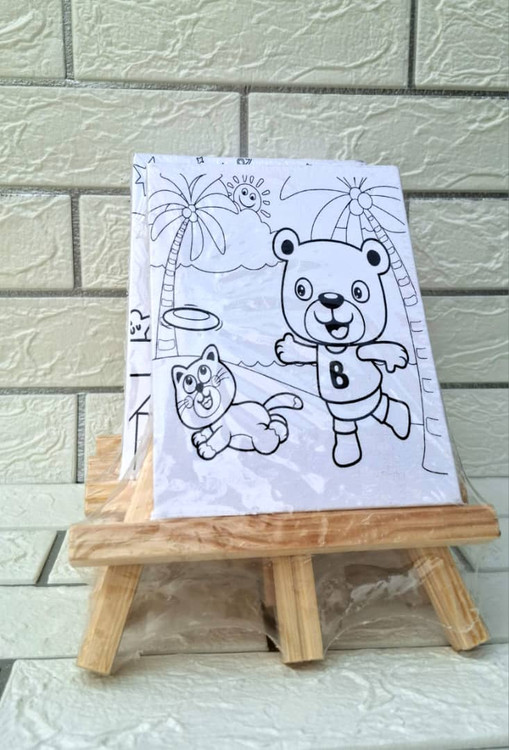 ست آبرنگ و بوم رنگ آمیزی کودکانه مدل تدی