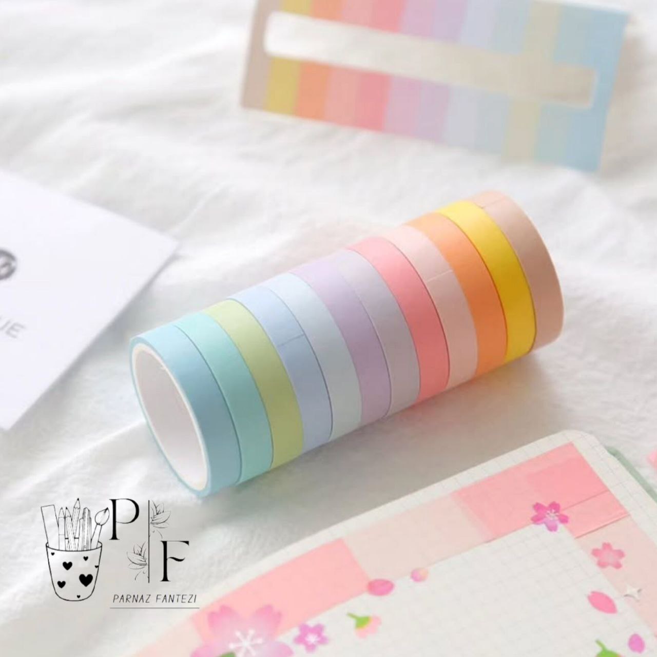 با پک چسب واشی ۱۲ رنگ، دنیای رنگها رو به دفتر، دیوار یا هر سطحی که دوست داری بیار! این نوارهای کاغذی با رنگبندی پاستلی و جذاب، نهتنها کاربردی هستن، بلکه روحیهات رو هم شاد میکنن.